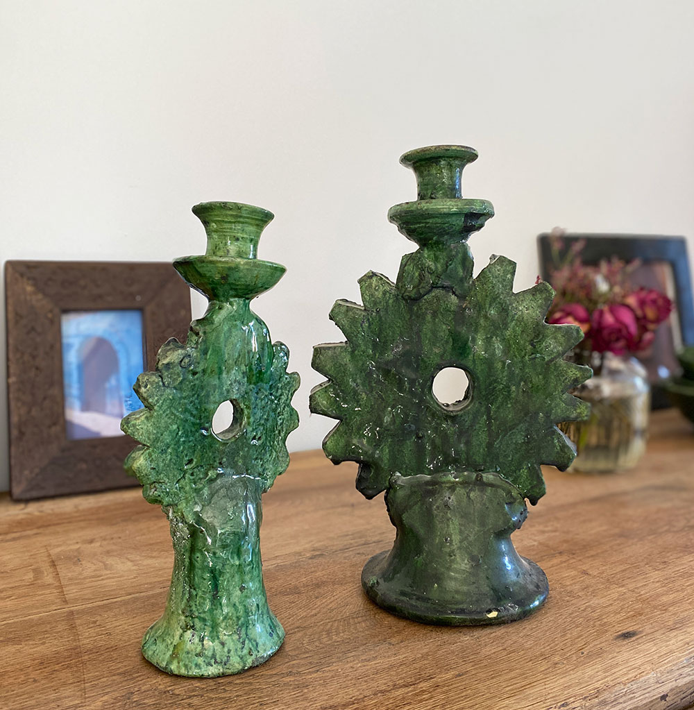 Bougeoir en céramique de Tamegroute authentique Forme Soleil GM Hauteur 24 à 27 cm