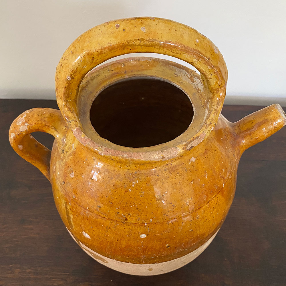 Pot ancien en terre cuite vernissée à huile ou chevrette ton ocre